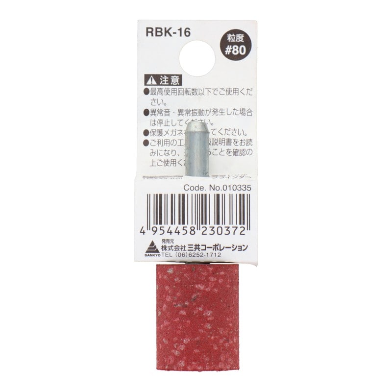三共コーポレーション 4348654 RBK-16 軸付ゴム砥石砥粒入り 円筒型 #80 1個(ご注文単位1個)【直送品】
