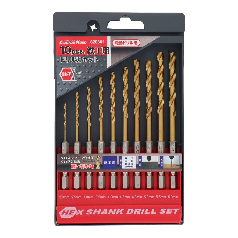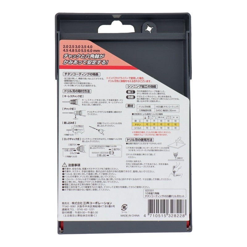 三共コーポレーション 434002 10本組六角軸HSS鋼チタンドリル刃セット #820301 1個(ご注文単位1個)【直送品】