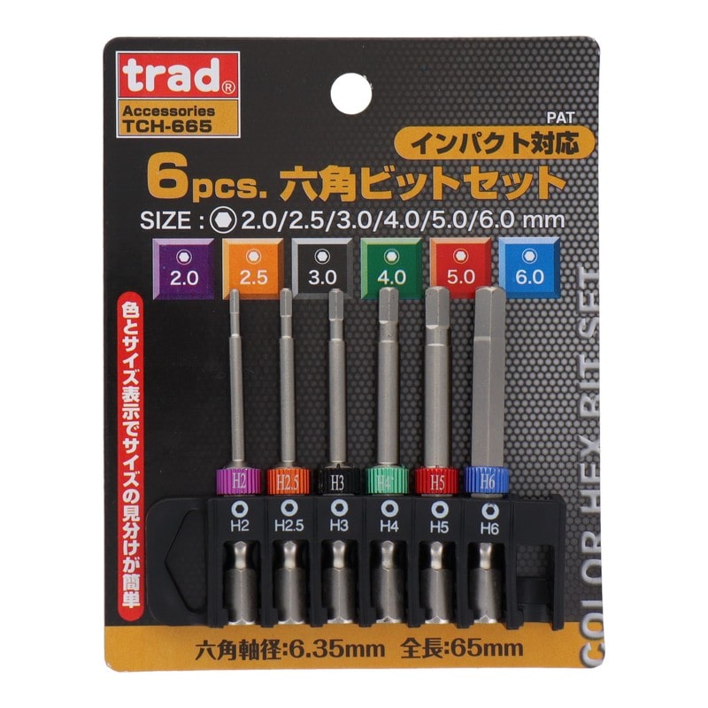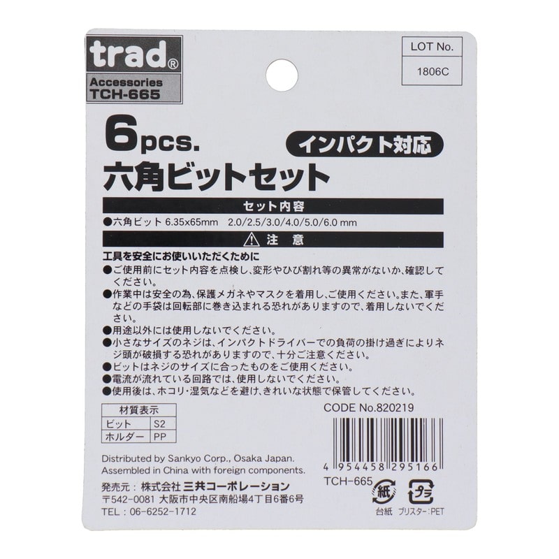 三共コーポレーション 4342396 6pcs.六角ビットセット 65mm #820219 1個(ご注文単位1個)【直送品】