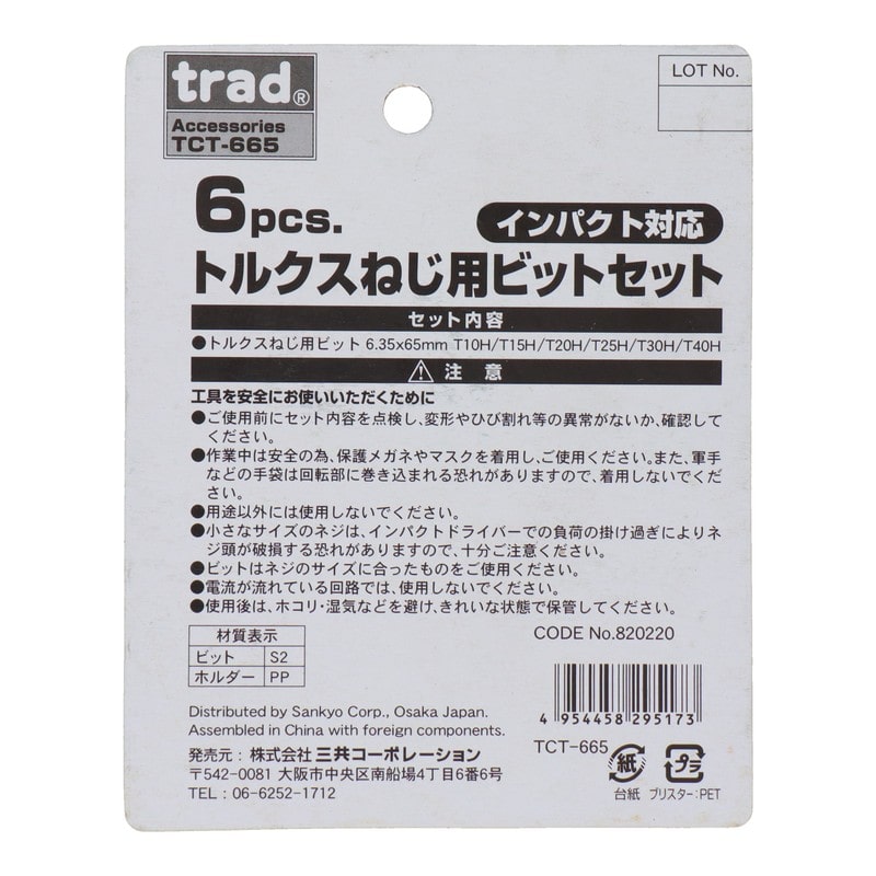 三共コーポレーション 4342397 6pcs.トルクスねじ用ビットセット 65mm #820220 1個(ご注文単位1個)【直送品】
