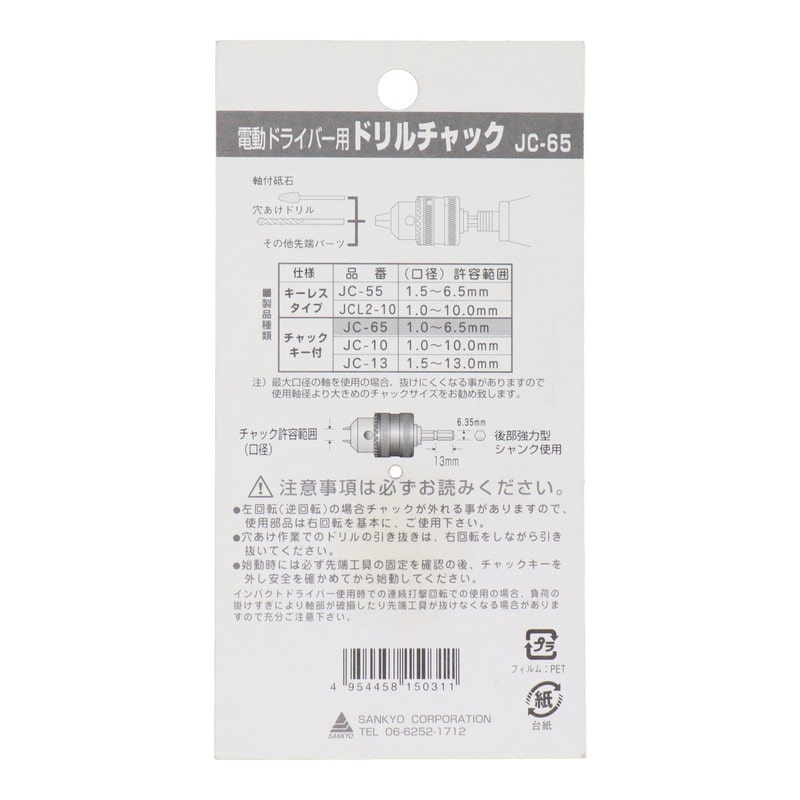 三共コーポレーション 510630 ドリルチャック 1.0~6.5mm #220940 1個(ご注文単位1個)【直送品】