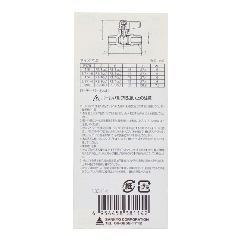 三共コーポレーション 4342773 ボールコック 両外ネジ R1/8 #133114 1個(ご注文単位1個)【直送品】