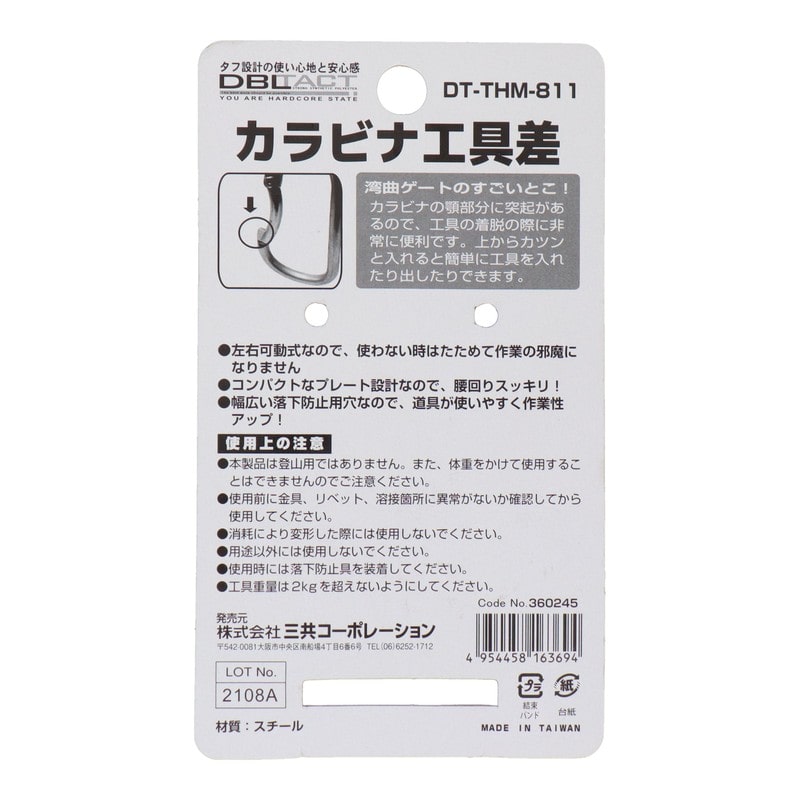 三共コーポレーション 4348550 可動式カラビナ工具差 スチール シルバー DT-THM-811 1個(ご注文単位1個)【直送品】