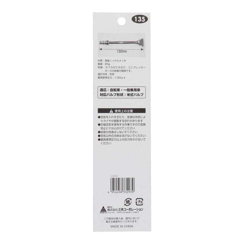 三共コーポレーション 4342637 エアーチャック自転車・自動車兼用カプラ接続タイプ #133135 1個(ご注文単位1個)【直送品】
