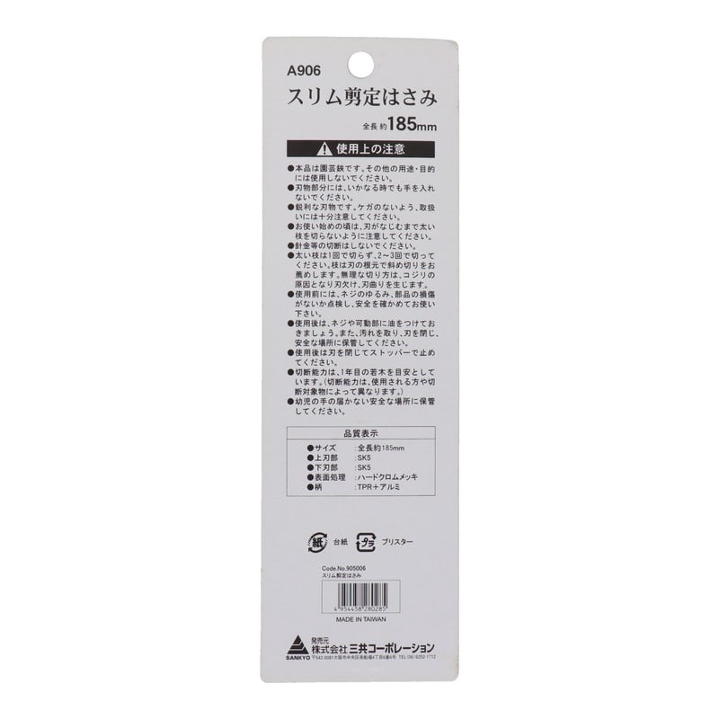 三共コーポレーション 4344254 ハードクロムメッキ スリム剪定はさみ #905006 1個(ご注文単位1個)【直送品】