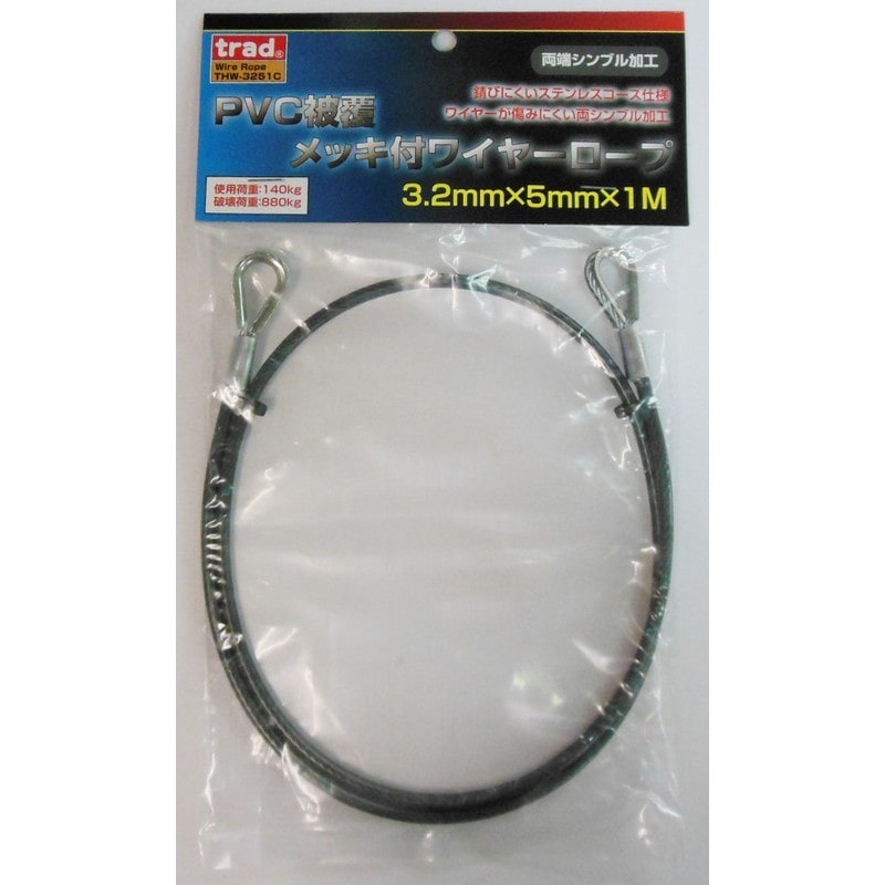 ロープ径:3.2mm/ロープ長さ:1m/シンブル寸法:約30mm