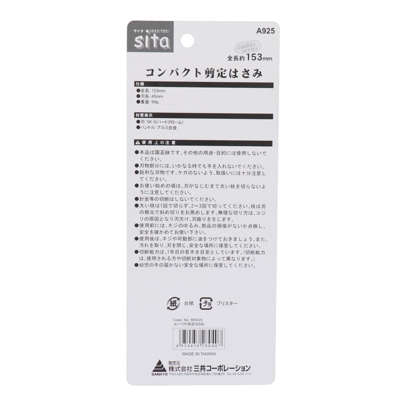 三共コーポレーション 4071406 コンパクト剪定はさみ #905025 1個(ご注文単位1個)【直送品】