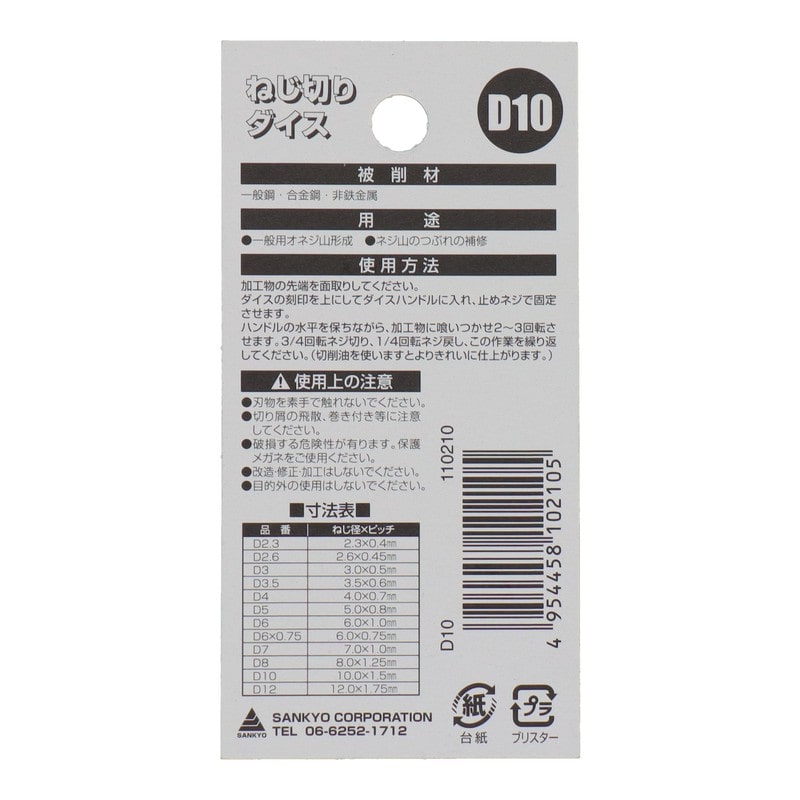 三共コーポレーション 420065 ねじ切りダイス ねじ径10mm×ピッチ1.5mm #110210 1個(ご注文単位1個)【直送品】