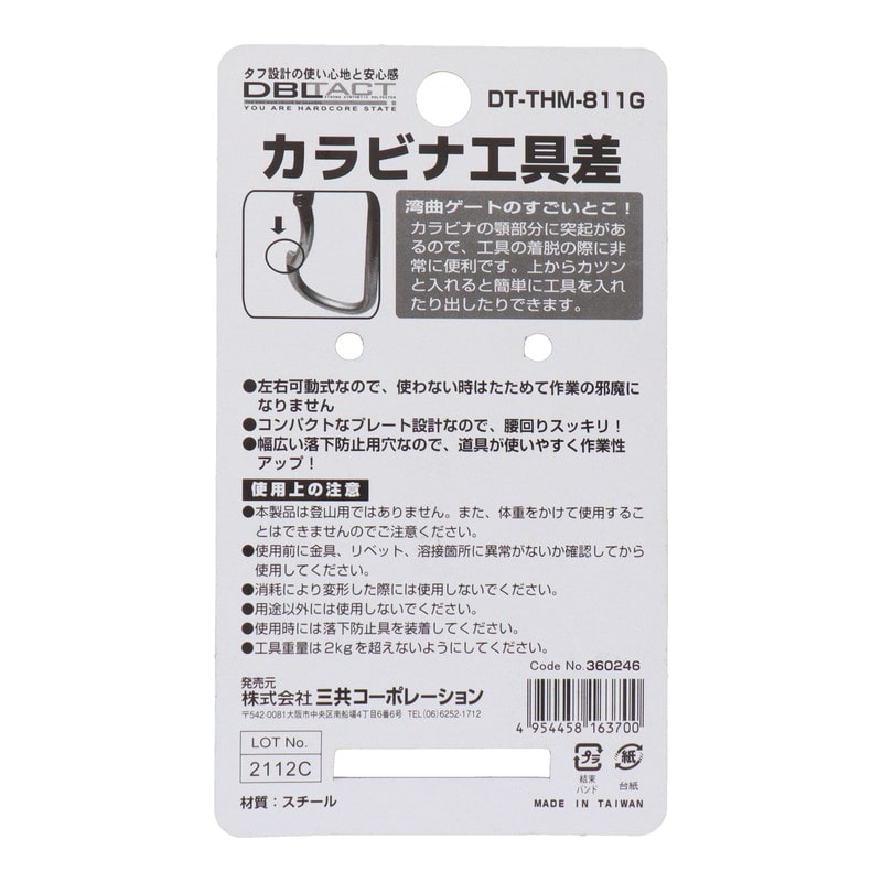 三共コーポレーション 4348546 可動式カラビナ工具差 スチール ガンメタ DT-THM-811G 1個(ご注文単位1個)【直送品】