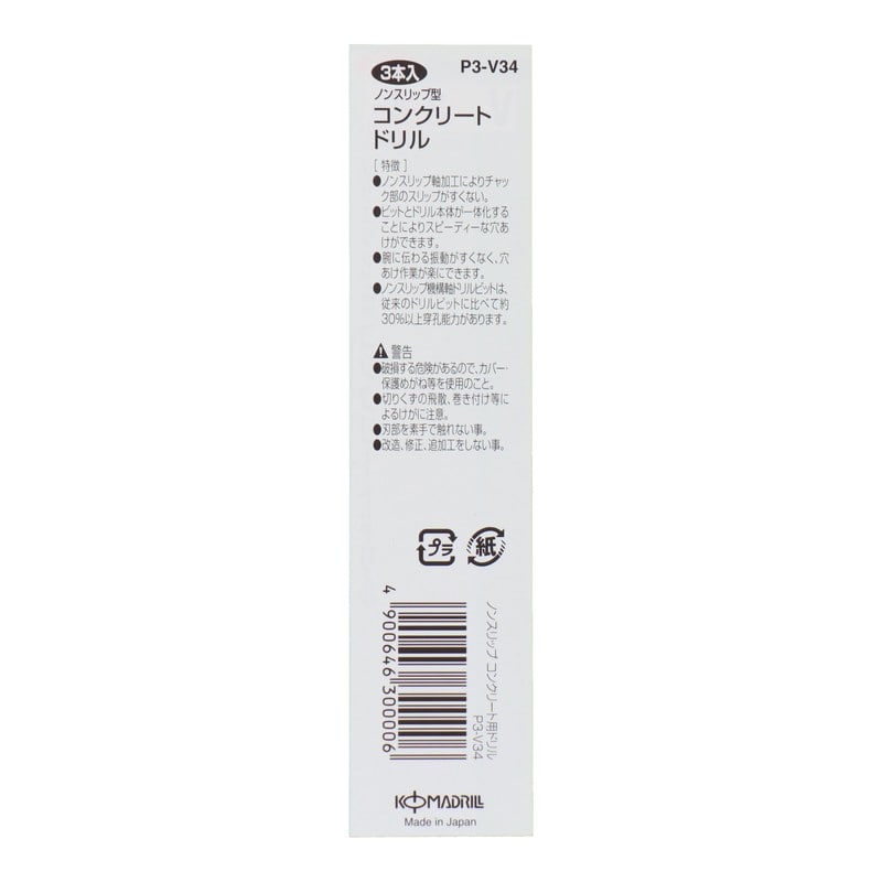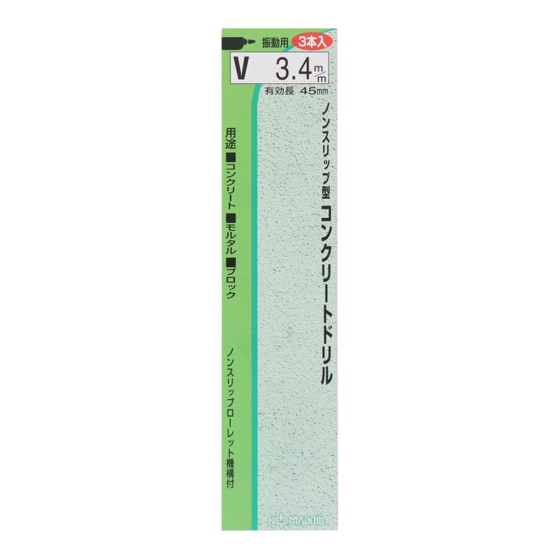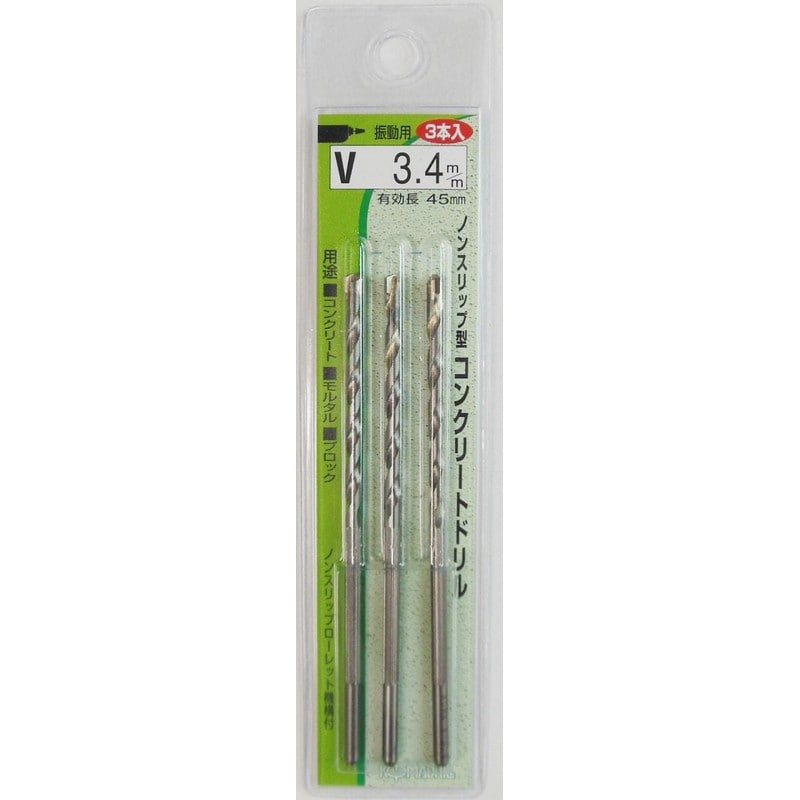 三共コーポレーション 4348609 ノンスリップ型コンクリートドリル3本入3.4mm P3-V34 1個(ご注文単位1個)【直送品】