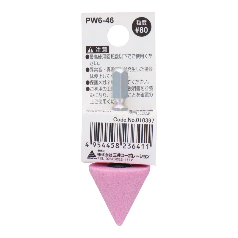 三共コーポレーション 4352010 PW6-46 六角軸軸付砥石 三角型 #80 #010397 1個(ご注文単位1個)【直送品】