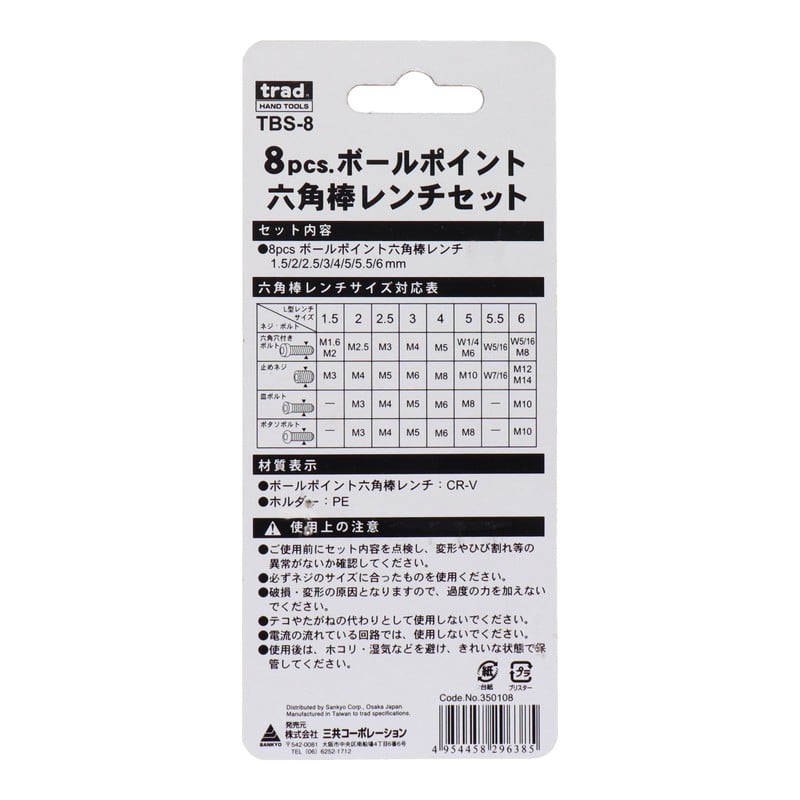 三共コーポレーション 4341983 8pcs.ボールポイント六角棒レンチセット #350108 1個(ご注文単位1個)【直送品】