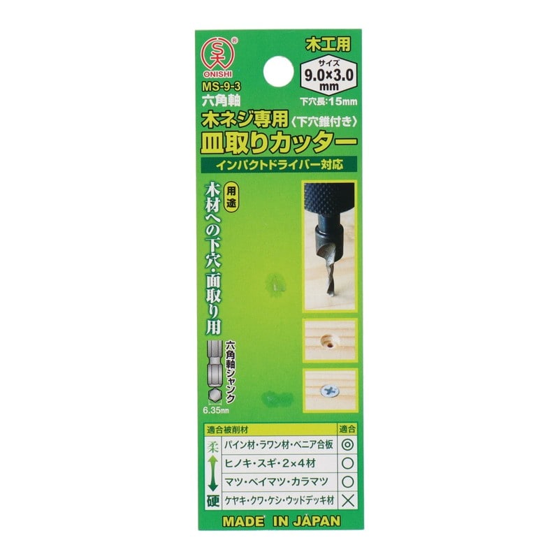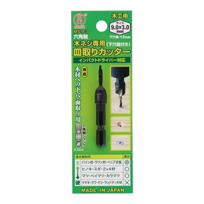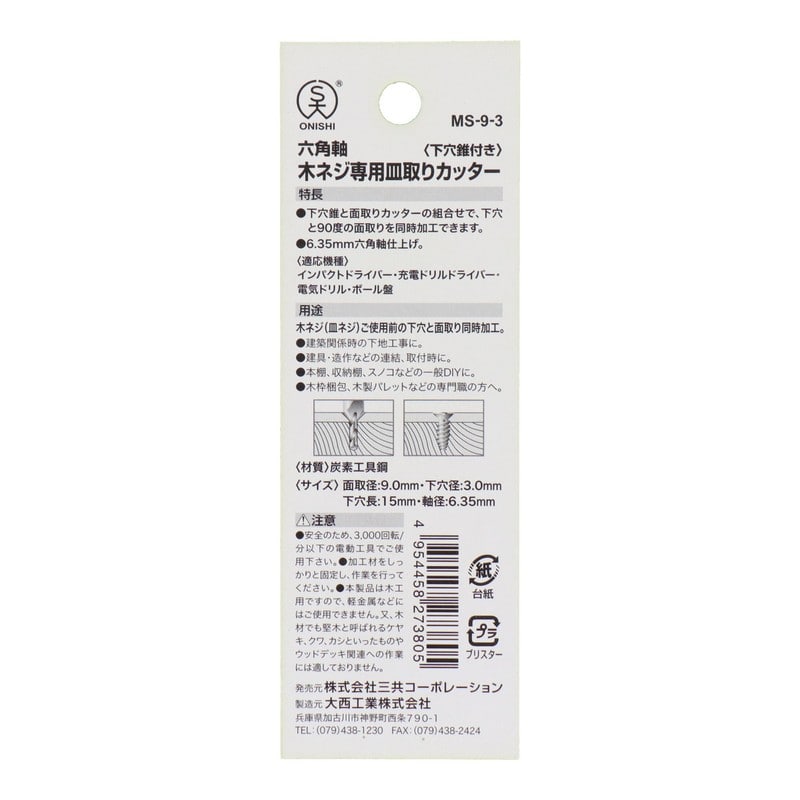 三共コーポレーション 4348935 木ネジ専用皿取りカッター下穴錐付9.0×3.0mm MS-9-3 1個(ご注文単位1個)【直送品】