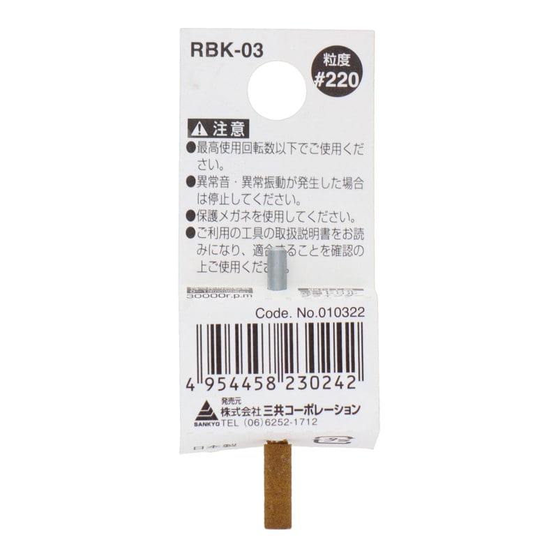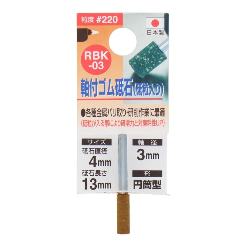 三共コーポレーション 4348641 RBK-03軸付ゴム砥石砥粒入り円筒型#220 1個(ご注文単位1個)【直送品】