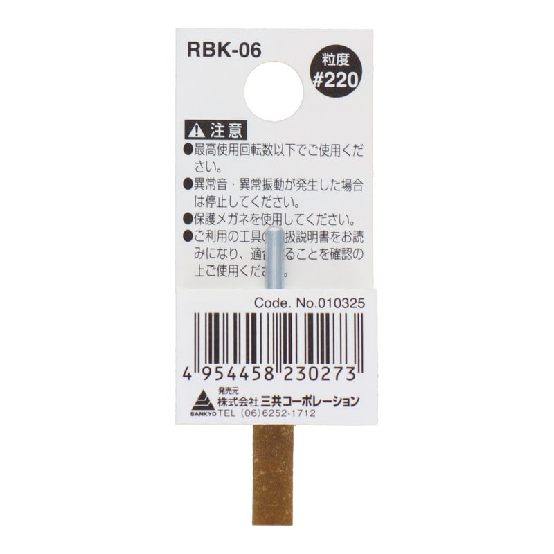 三共コーポレーション 4348644 RBK-06軸付ゴム砥石砥粒入り円筒型#220 1個(ご注文単位1個)【直送品】