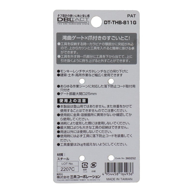 三共コーポレーション 4348283 カラビナ工具差 湾曲ゲート×爪付き ガンメタ #360252 1個(ご注文単位1個)【直送品】