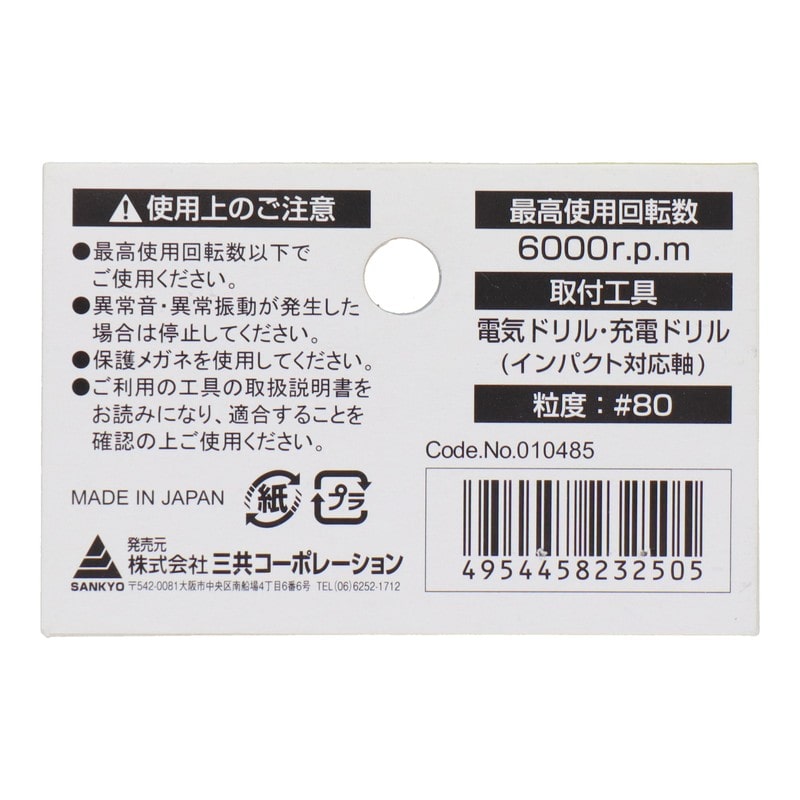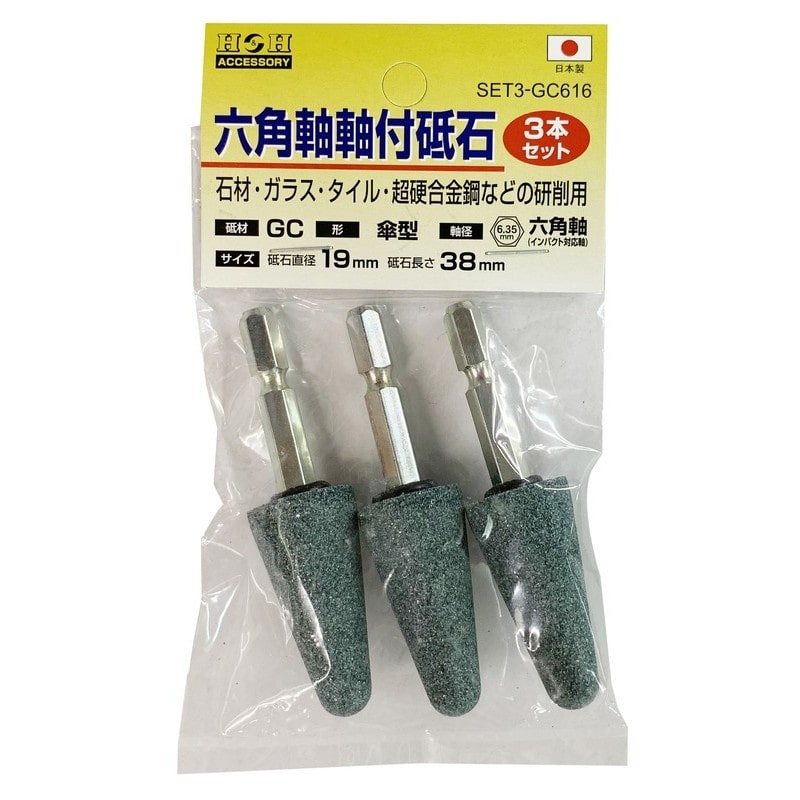 三共コーポレーション 4352806 SET3-GC616 六角軸軸付砥石 傘型 #80 1個(ご注文単位1個)【直送品】