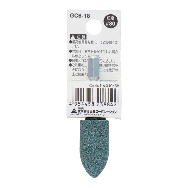 三共コーポレーション 4343079 GC6-18 六角軸軸付砥石 砲弾型 #80 #010458 1個(ご注文単位1個)【直送品】