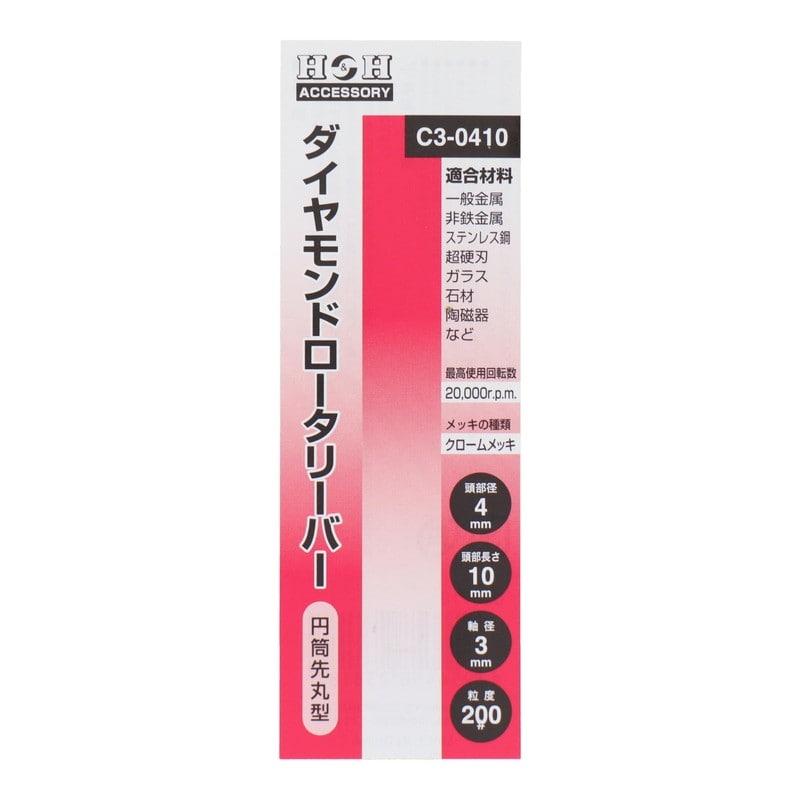 三共コーポレーション 4343185 ダイヤモンドロータリーバー 円筒先丸型 4mm #000718 1個(ご注文単位1個)【直送品】