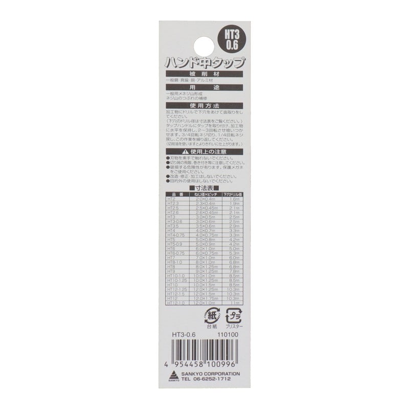 三共コーポレーション 4343796 ハンドタップねじ径3.0mm×ピッチ0.6mm #110100 1個(ご注文単位1個)【直送品】