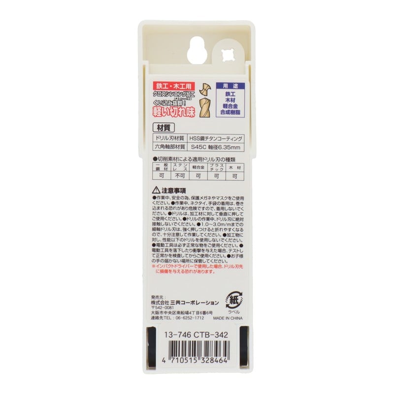 三共コーポレーション 434109 ドリル刃セット 4.0・5.0・6.0mm #820328 1個(ご注文単位1個)【直送品】