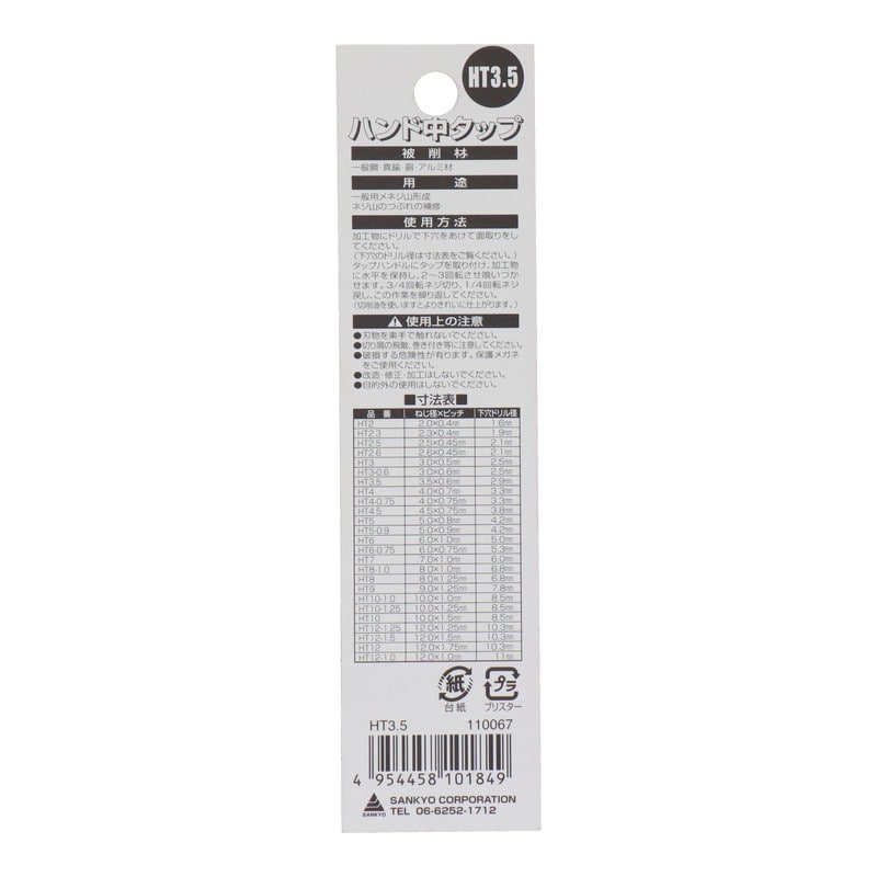 三共コーポレーション 4343797 ハンドタップねじ径3.5mm×ピッチ0.6mm #110067 1個(ご注文単位1個)【直送品】