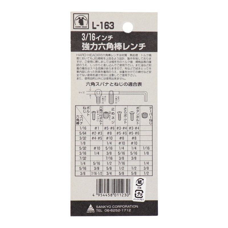 三共コーポレーション 4343528 強力六角棒レンチ 3/16インチ #221523 1個(ご注文単位1個)【直送品】