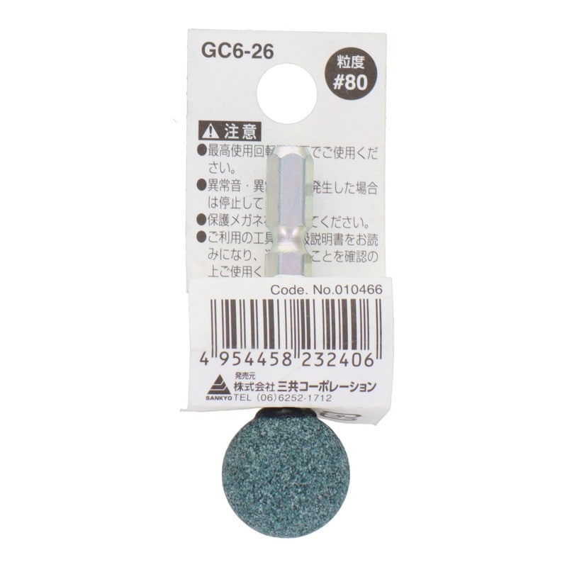 三共コーポレーション 4071313 GC6-26 六角軸軸付砥石 丸型 #80 #010466 1個(ご注文単位1個)【直送品】