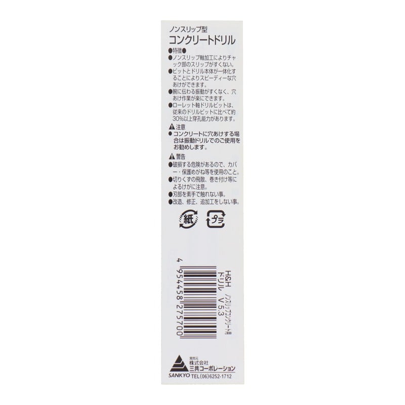 三共コーポレーション 501160 ノンスリップ型コンクリートドリル 5.3mm #076153 1個(ご注文単位1個)【直送品】