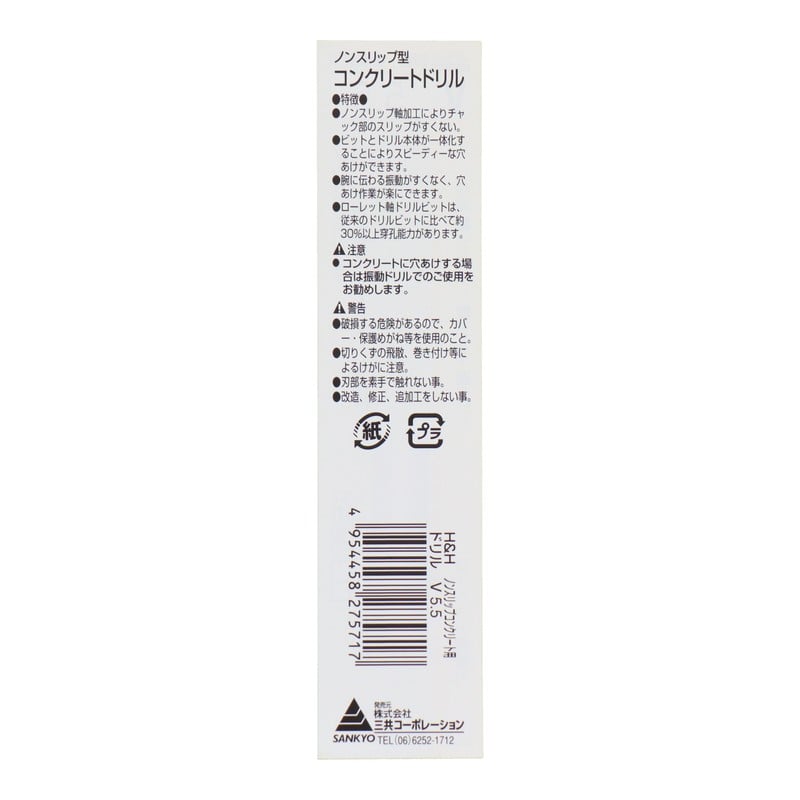 三共コーポレーション 501161 ノンスリップ型コンクリートドリル 5.5mm #076155 1個(ご注文単位1個)【直送品】