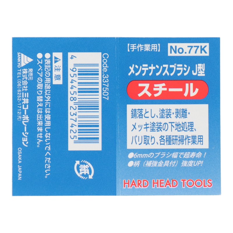 三共コーポレーション 4340052 メンテナンスブラシ J型 スチール #337507 1個(ご注文単位1個)【直送品】