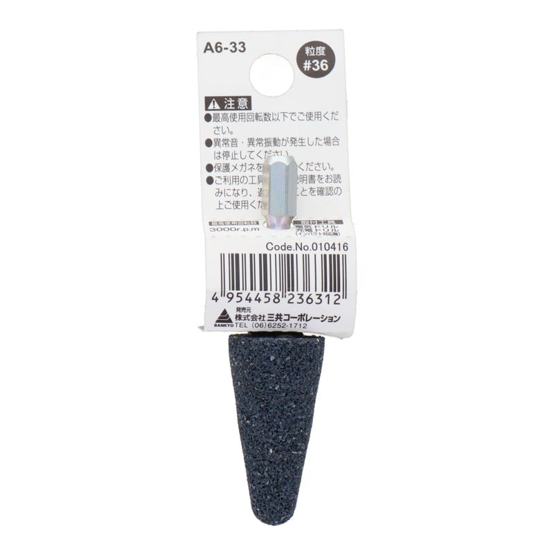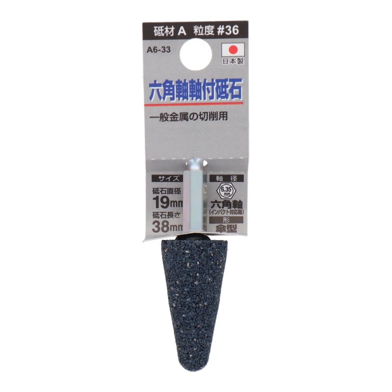 三共コーポレーション 4352017 A6-33 六角軸軸付砥石 傘型 #36 #010416 1個(ご注文単位1個)【直送品】