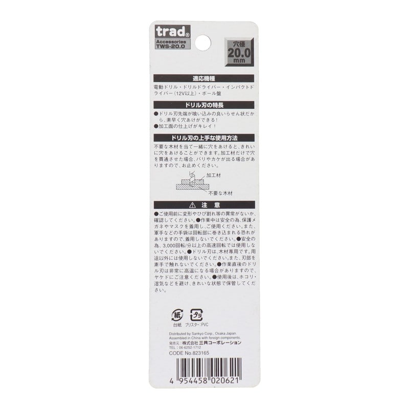 三共コーポレーション 4341157 木工用ショートビット 20mm #823165 1個(ご注文単位1個)【直送品】