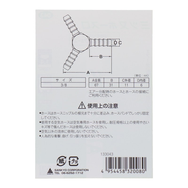 三共コーポレーション 510213 三ツ又ホース口 11φ×11φ×11φ #133043 1個(ご注文単位1個)【直送品】