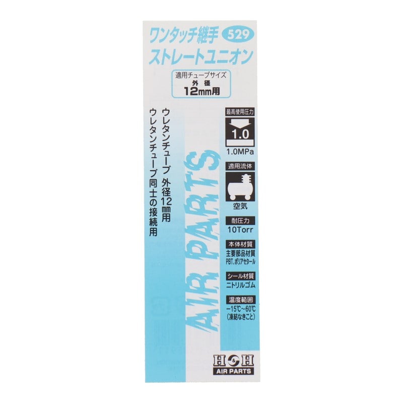 三共コーポレーション 4342737 ストレートユニオン 外径12mmチューブ用 #133529 1個(ご注文単位1個)【直送品】