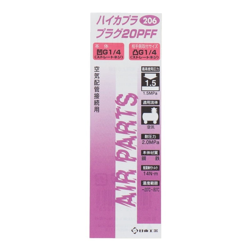 三共コーポレーション 4340567 ハイカプラ プラグ20PFF #133284 1個(ご注文単位1個)【直送品】