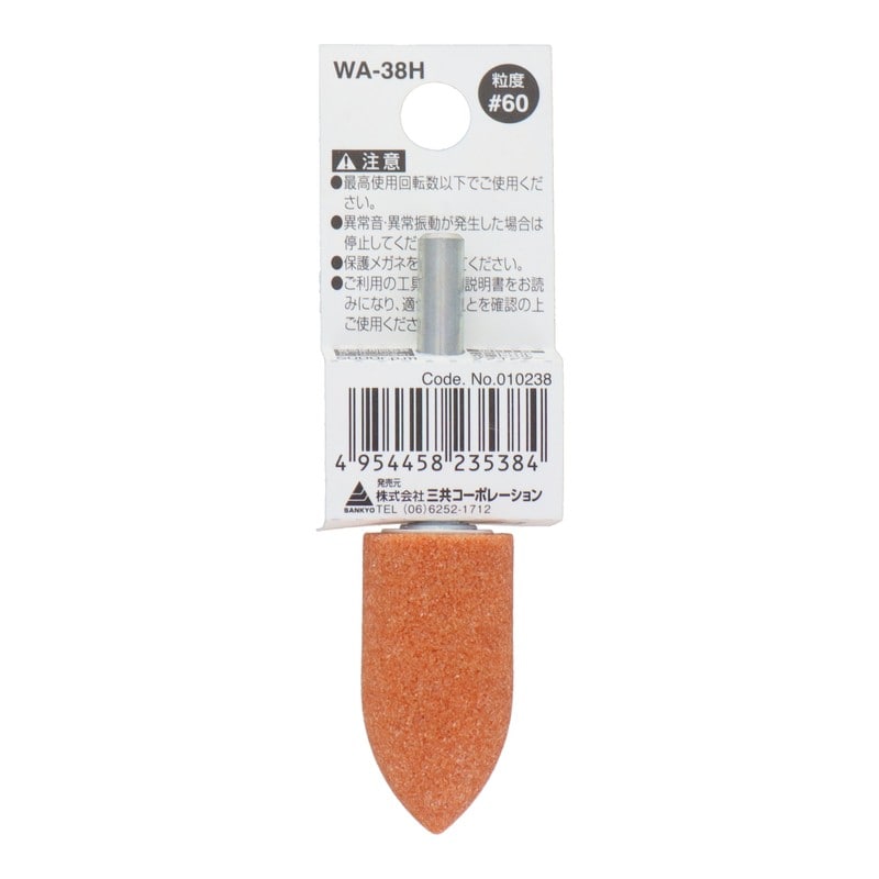三共コーポレーション 4340451 WA-38H 軸付砥石 砲弾型 #60 #010238 1個(ご注文単位1個)【直送品】