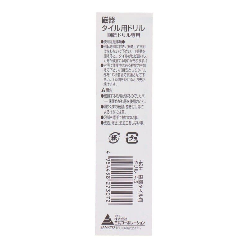 三共コーポレーション 503506 磁器タイル用ドリル 4.5mm #076045 1個(ご注文単位1個)【直送品】