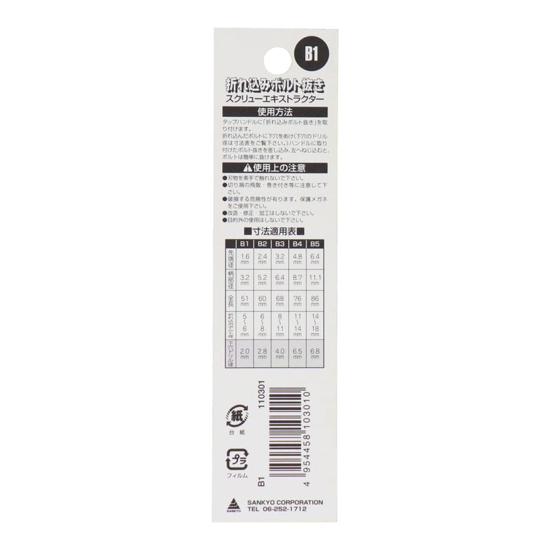 三共コーポレーション 420230 折れ込みボルト抜き 折れ込みボルト寸法 5~6mm #110301 1個(ご注文単位1個)【直送品】