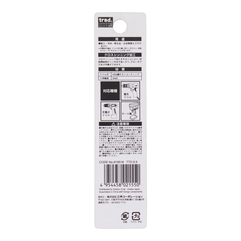 三共コーポレーション 434265 六角軸ショートチタンドリル 5.5mm #819518 1個(ご注文単位1個)【直送品】