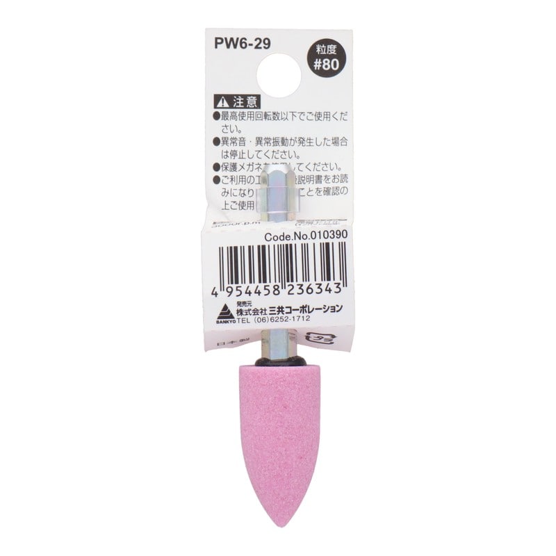 三共コーポレーション 4352003 PW6-29 六角軸軸付砥石 トンガリ型 #80 #010390 1個(ご注文単位1個)【直送品】