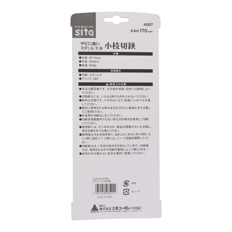 三共コーポレーション 4352827 サビに強いステンレス刃小枝切鋏ギザ刃 A007 1個(ご注文単位1個)【直送品】