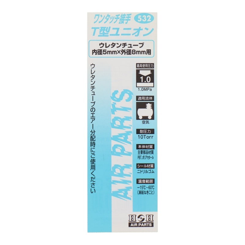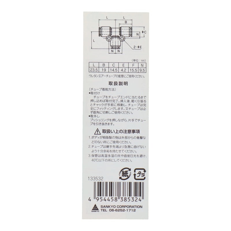 三共コーポレーション 4342747 T型ユニオン 外径8mmチューブ用 #133532 1個(ご注文単位1個)【直送品】
