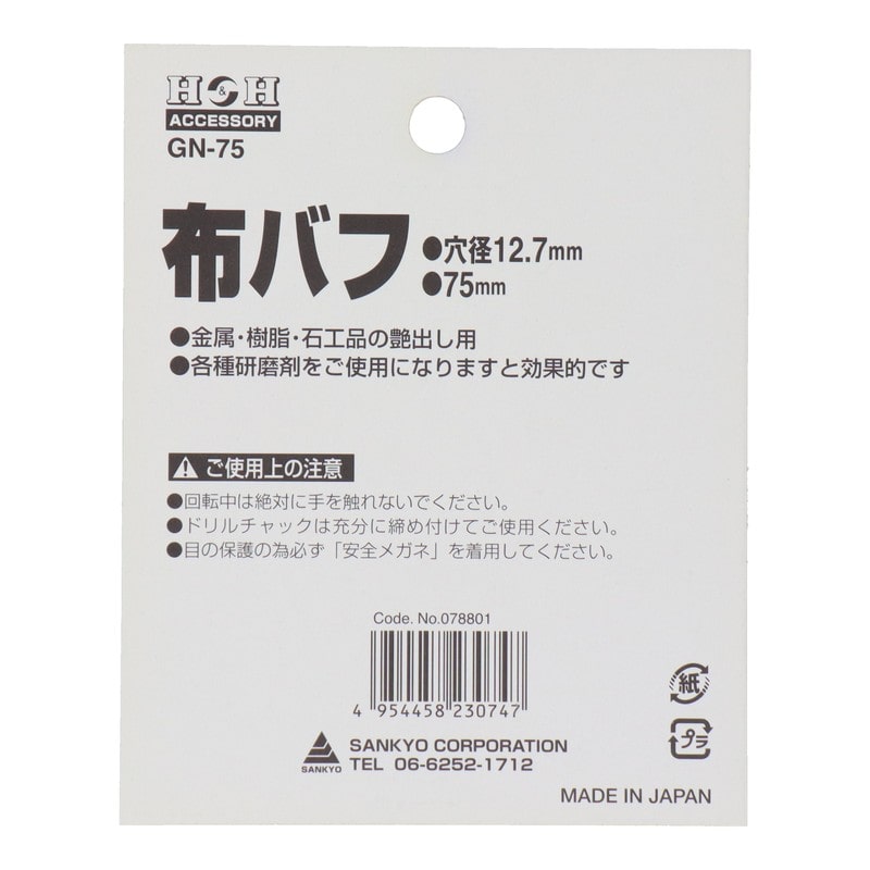 三共コーポレーション 510112 布バフ 75mm #078801 1個(ご注文単位1個)【直送品】