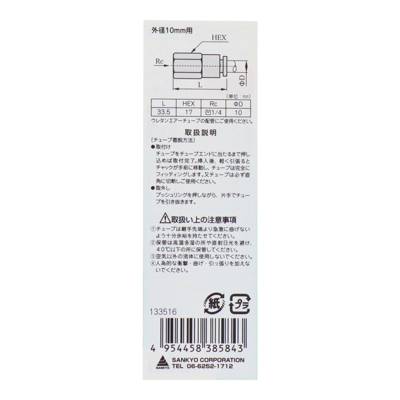 三共コーポレーション 4342720 メスユニオン Rc1/4 外径10mmチューブ用 #133516 1個(ご注文単位1個)【直送品】
