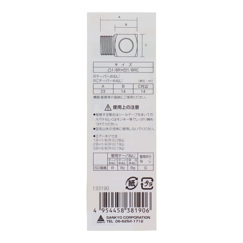 三共コーポレーション 4342698 内外エルボ R1/8×Rc1/8 #133190 1個(ご注文単位1個)【直送品】