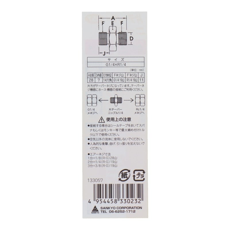 三共コーポレーション 510223 特殊ニップル Rc1/4×G1/4 #133076 1個(ご注文単位1個)【直送品】