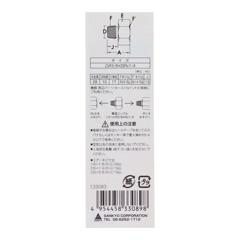 三共コーポレーション 510228 異径ニップルソケット R3/8×Rc1/4 #133083 1個(ご注文単位1個)【直送品】