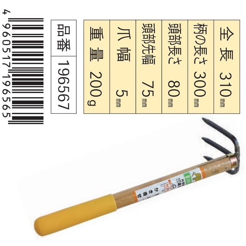 浅香工業 302360 片手鍬 三本爪 300mm椎柄 グリップ付 #196567 1個(ご注文単位1個)【直送品】