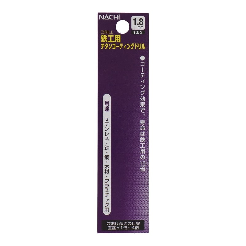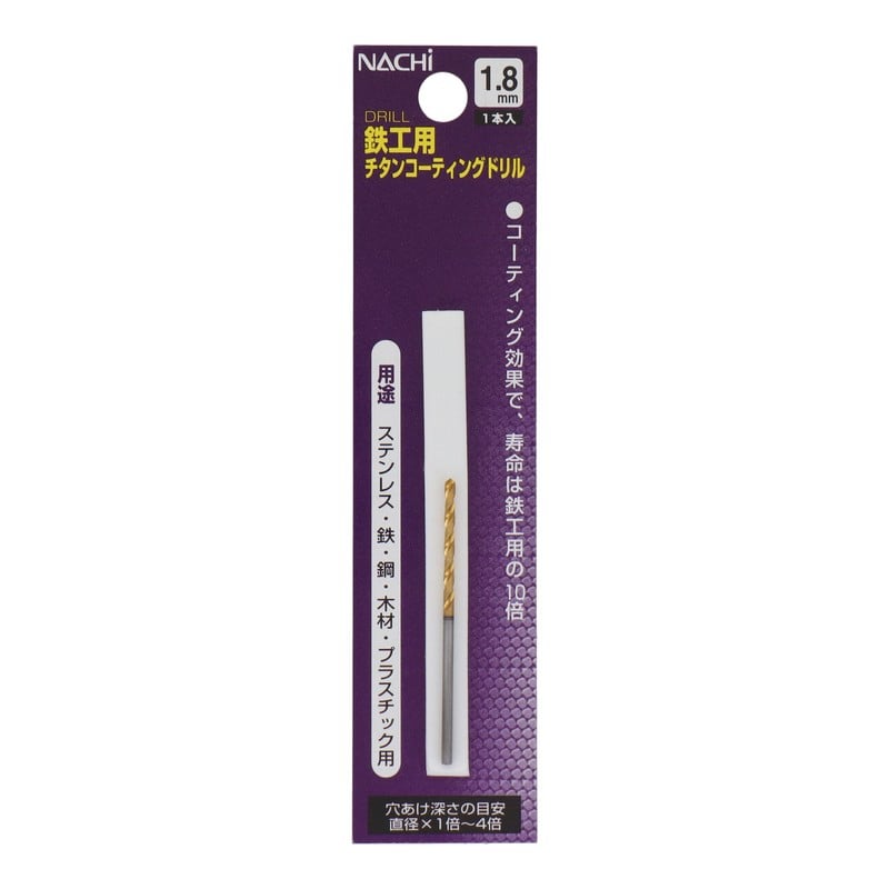 不二越 502353 鉄工用チタンコーティングドリル 1.8mm #454218 1個(ご注文単位1個)【直送品】